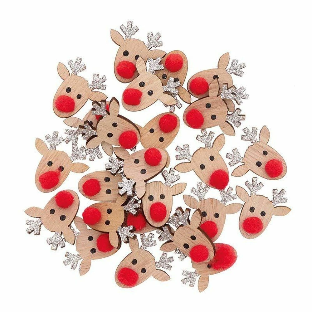 108 Confettis Rennes En Bois Paillettes Argentées 2,3 Cm