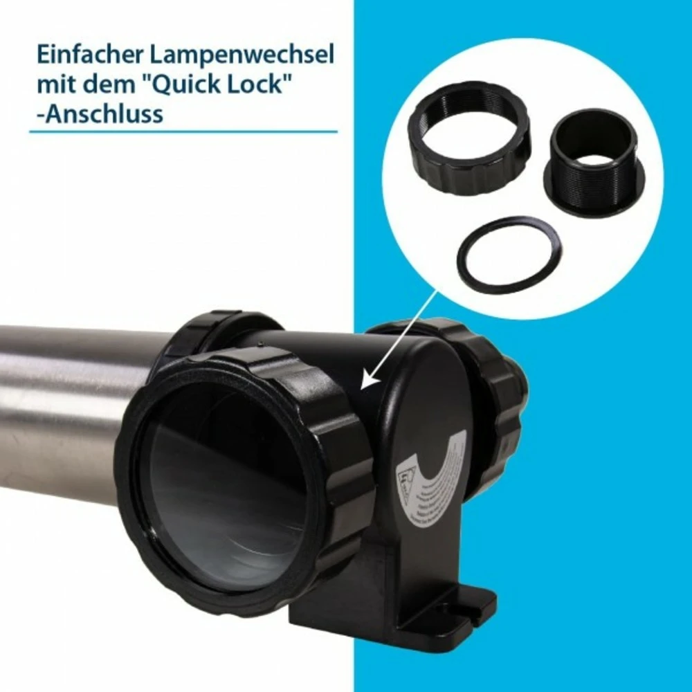 avec la série suv, chez aquaforte, nous proposons une lampe uv à un prix raisonnable dans différentes classes de puissance. Grâce à la carrosserie en acier inoxydable, le suv est 35 % plus puissant que les modèles à carrosserie en plastique. Les lampes sont faciles à installer et, grâce à l’embout de tuyau, s’adaptent à presque tous les systèmes de bassin.