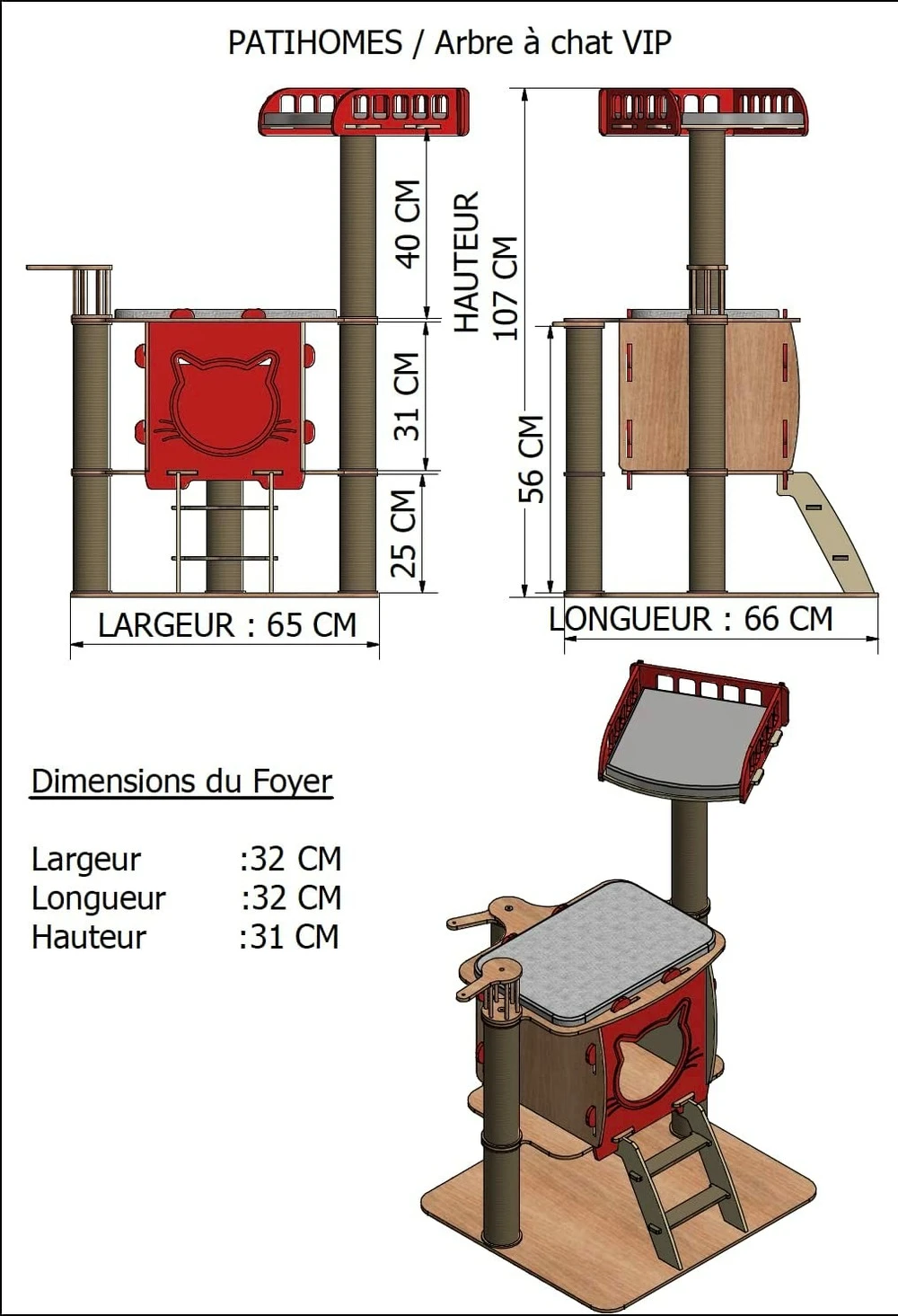 L’arbre à chat est le passe-temps favori de tous les chats. Un arbre à chat permet aux chats de faire leurs griffes et à vos meubles de rester intacts. Il convient aussi parfaitement comme endroit pour dormir ou comme cachette confortable. Les chats sont des animaux très curieux et aiment avoir en vue tout leur environnement. C’est pourquoi un arbre à chat est exactement ce qui convient à votre compagnon à quatre pattes. Cet arbre à chat offre de nombreuses possibilités pour jouer, se faire les griffes ou se cacher. Il plaira sans aucun doute à votre chat. Convient pour tout type de chat. Les chatons et les chats âgés pourront grimper sans difficulté aux niveaux supérieurs -répond au besoin de la naissance à la vieillesse quel que soit la taille et la race. -la niche et la plateforme de repos sont suffisamment spacieuses et s’adaptent à chaque besoin ; fonctionnalité, durabilité et confort. Structure : 8 mm en mdf mélaminé qui résiste bien aux griffes griffoir : 85mm de diamètre.poids de l’article : 14,20 kilogrammes