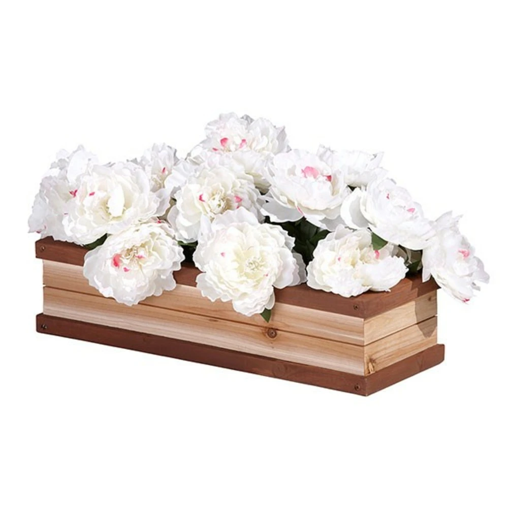 un bac à fleur en bois de cèdre. Bois 100% cèdre cunninghemia lanceolata, 100% fsc, naturellement imputrescible, non traité chimiquement, peintures base eau, facile à installer. Dimensions: 54 x19 x 11,5 cm