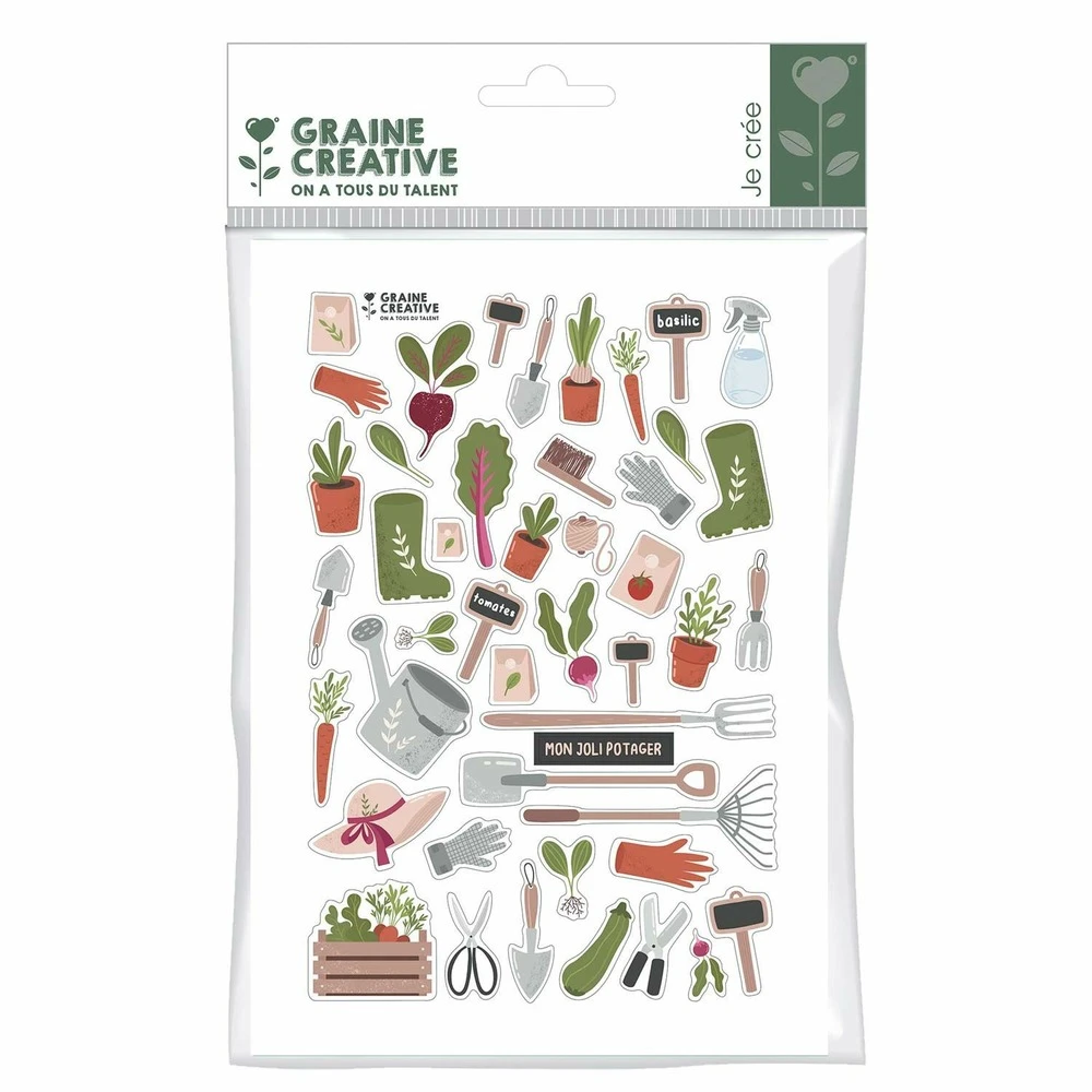 Ce carnet est la mémoire de votre jardin, vos projets pour l’année et les apprentissages que vous avez pu tirer de vos essais botaniques. Pour ne rien oublier ce carnet vous aidera dans l’organisation de votre jardin, vous pourrez y faire : les plans du jardin, les taches à effectuer mois par mois, la fiche technique de chaque plante, le calendrier des plantations à l’année, vos stocks de graines et toutes les infos bonnes à noter. Le carnet de jardinage est un outil essentiel pour tous les amateurs de plantes et de jardinage. Il permet de suivre l’évolution de son jardin au fil des saisons. Ce carnet est parfait pour les débutants en jardinage, mais aussi pour les jardiniers expérimentés. Dimensions : 18 x 13 cm. Quantité : 80 pages. Vous pourrez décorer le carnet avec ces 46 stickers potager. Ils représentent une grande variété de légumes, comme des courgettes, des carottes ou des radis, des outils de jardinage (pelle, rateau, gants) et divers accessoires. Les autocollants sont faciles à utiliser et conviennent à tous les âges. Format : a5.