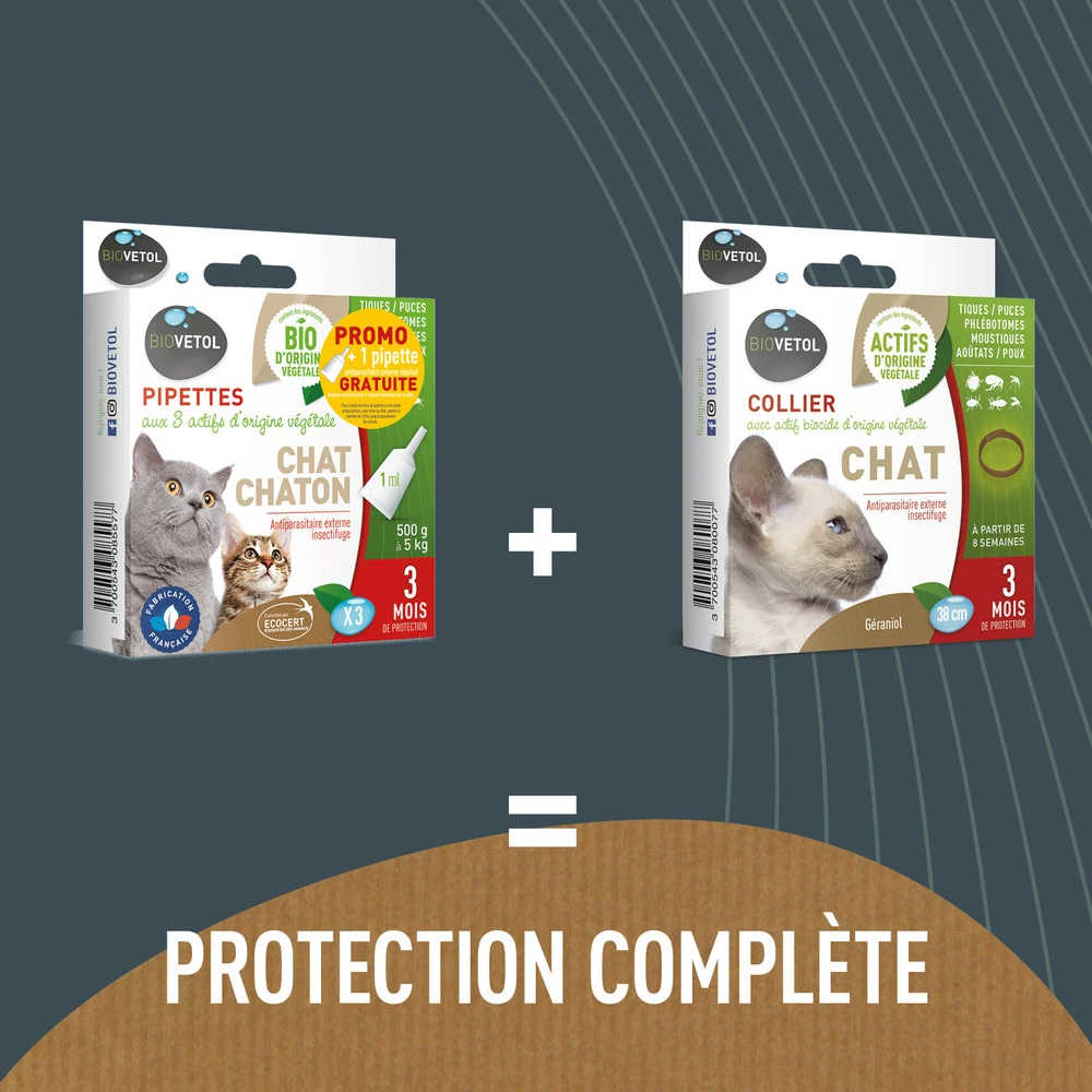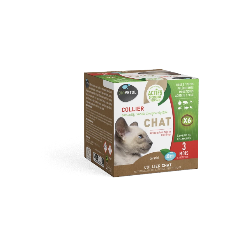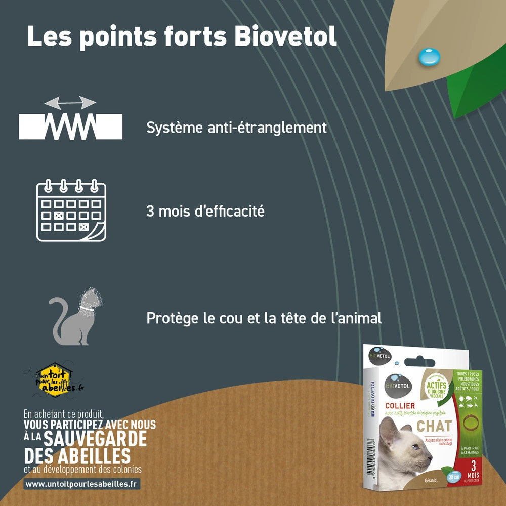 Repousse les parasites : le collier répulsif antiparasitaire biovetol pour chat est conçu pour repousser les parasites externes tels que les puces, les tiques et les moustiques