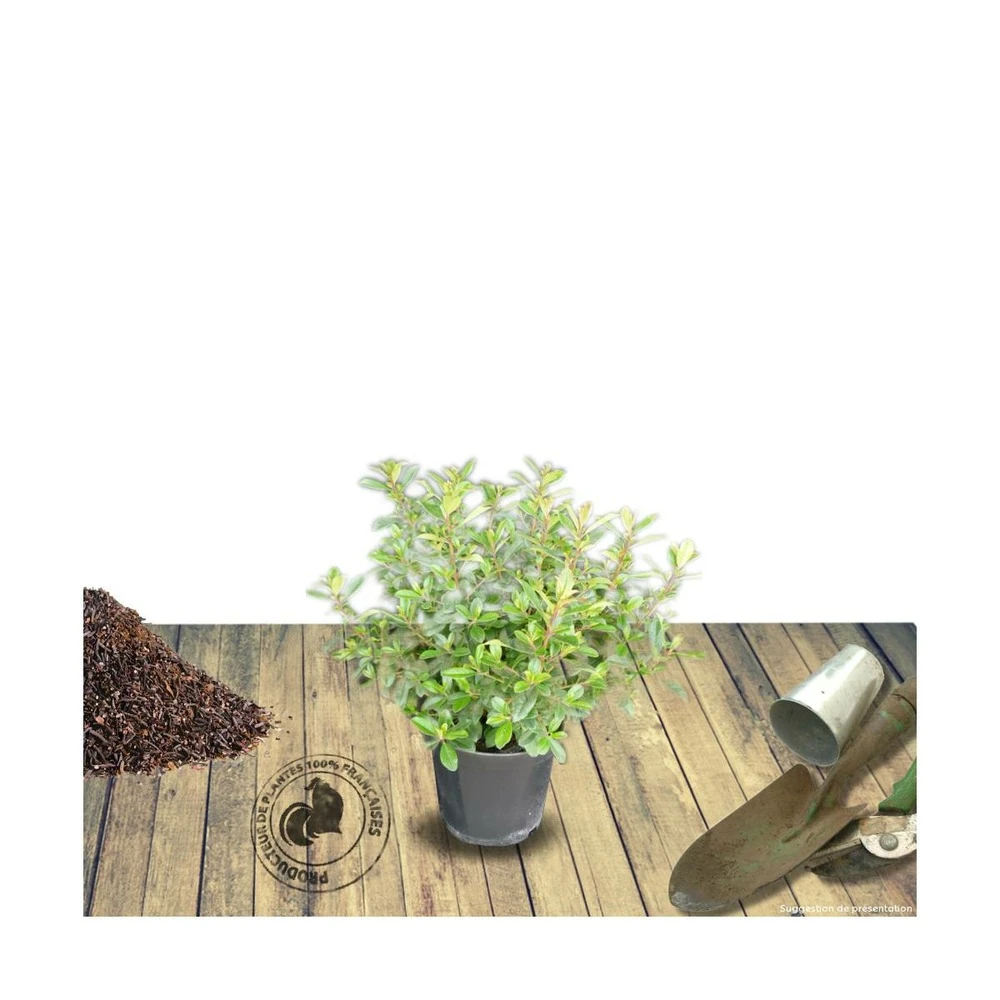 cet arbuste au port arrondi et au feuillage vert, brillant et persistant dispose d’une jolie floraison rose pâle apparaissant dès le mois de juin et s’Ă©talant jusqu’en aoĂ»t.