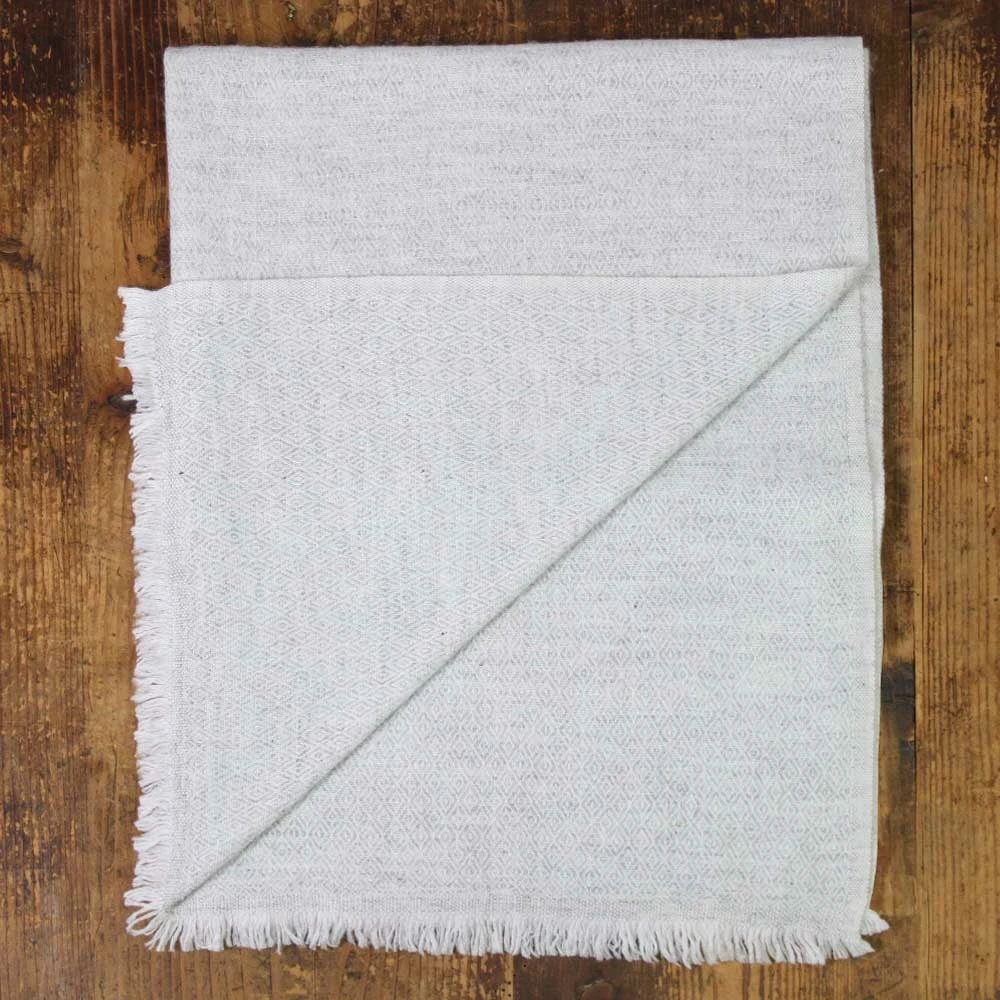 Cette grande ã©charpe gris argentã© est parfait pour se couvrir lors de journã©es un peu fraã®ches. Il est parfait pour couvrir vos ã©paules faã§on chã¢le ou autour du cou faã§on ã©charpe oversize. Sa couleur grise naturelle est une couleur douce qui se mariera trã¨s bien avec votre armoire. Composã© de laine vierge et cachemire de qualitã© supã©rieure, cette grande ã©charpe est fabriquã©e au nã©pal grã¢ce au cachemire du cou et du ventre d’une petite chã¨vre nommã©e « changra ». Ce pashmina est tissã© ã la main sur des mã©tiers ã tisser pour garder l’ã©paisseur des fibres et leur moelleux. Avec sa jolie couleur claire, ce chã¢le sera un accessoire harmonieux pour votre armoire. Laissez-vous sã©duire par son design moderne avec motif « diamant ». Cette ã©tole est aussi disponible dans d’autres couleurs : ã©tole / pashmina beige amande, ã©tole / pashmina gris anthracite, ã©tole / pashmina marron glacã©, ã©tole / pashmina camel. Envie d’une ã©charpe traditionnelle cliquez sur nos ã©charpes en cachemire et laine. Composition : 20% cachemire – 80% laine vierge. Origine : cachemire du nã©pal provenant de la chã¨vre « changra » / laine vierge. Coloris : gris argentã© / couleur naturel de la chã¨vre. Finition : petites franges droites. Taille : grande etole (70 x 210 cm). Poids : 275 grammes