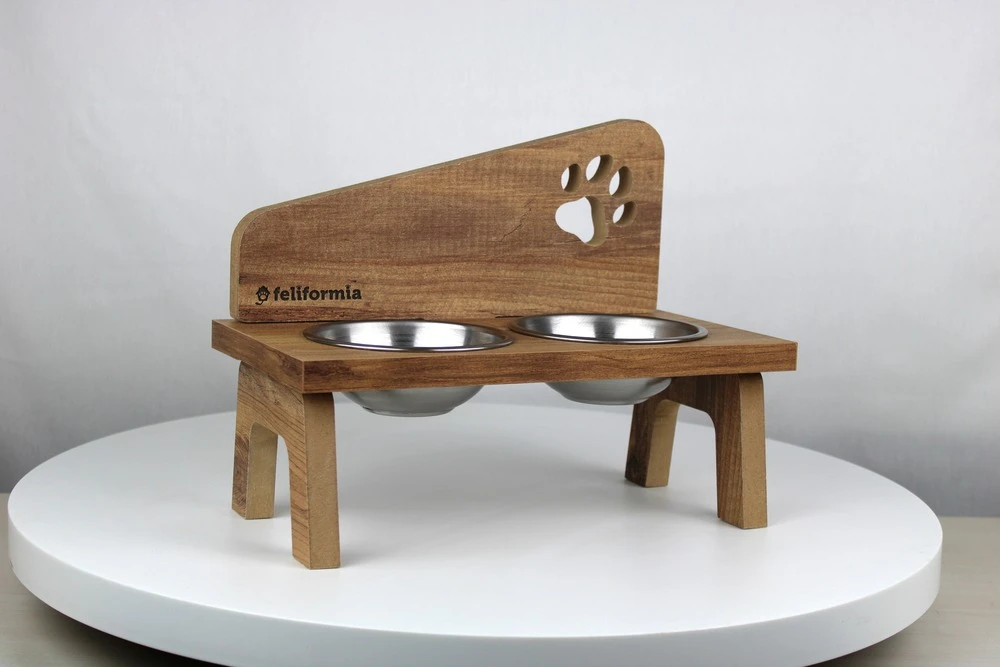 Feliformia® Gamelle Chat 600ml Support En Bois Avec 2 Bols Gamelle Chat Surélevée Acier Inoxydable Bol Pour Chat Et Petit Chien