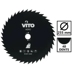 Lame De Coupe 255mm Vito Pour Débroussailleuse -40 Dents Alesage 25.4 Standard
