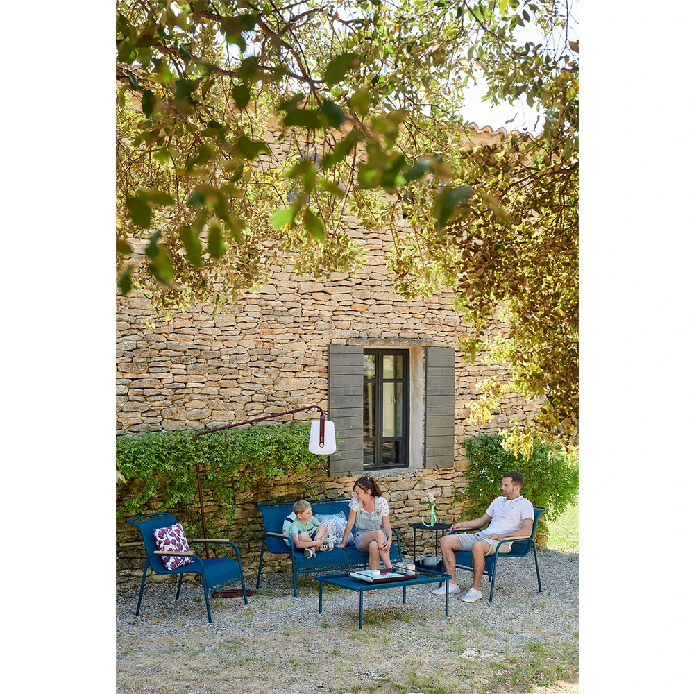 Cette lampe nomade peut vous suivre partout dans votre jardin ou s’installer sur l’un des deux pieds en mĂ©tal conçus pour l’accueillir.