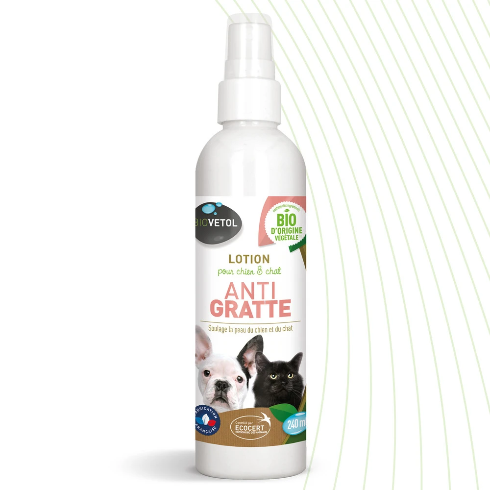 Anti-demangeaisons bio : le spray anti-gratte biovetol est spécialement adapté pour les chat ou les chiens ayant des problèmes de démangeaisons.