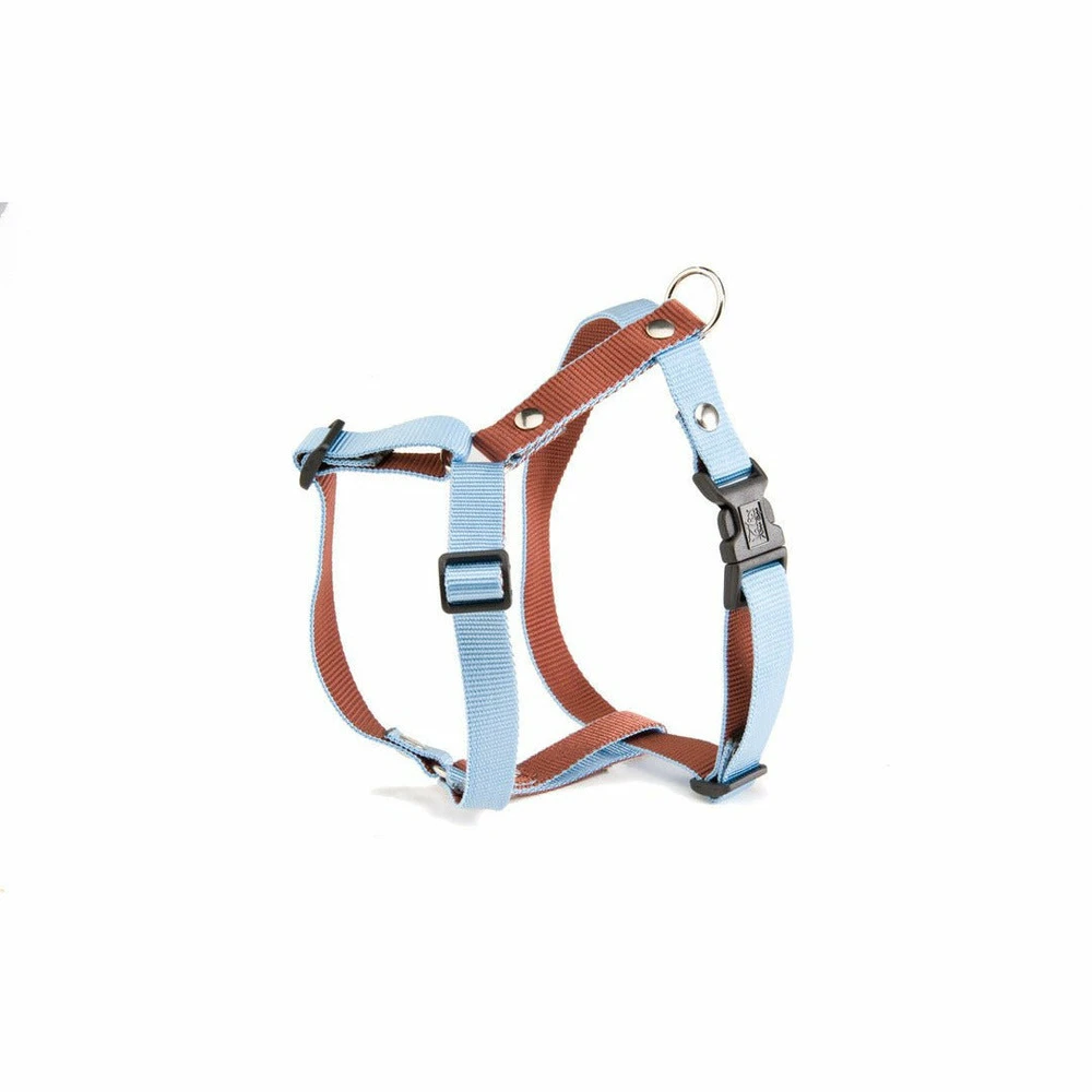 ☼ le harnais nylon bicolore bleu & marron de martin sellier est le choix parfait pour les chiens les plus branchés qui aiment rester à la pointe de la mode canine.