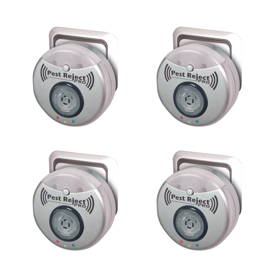 pest reject pro maintient les nuisibles à distance sans produit chimique. Il fonctionne grâce à une technologie à ultrasons électromagnétiques qui lui permet de couvrir 200m². La façon la plus simple de tenir les nuisibles à distances ! Vendu en lot de 4.