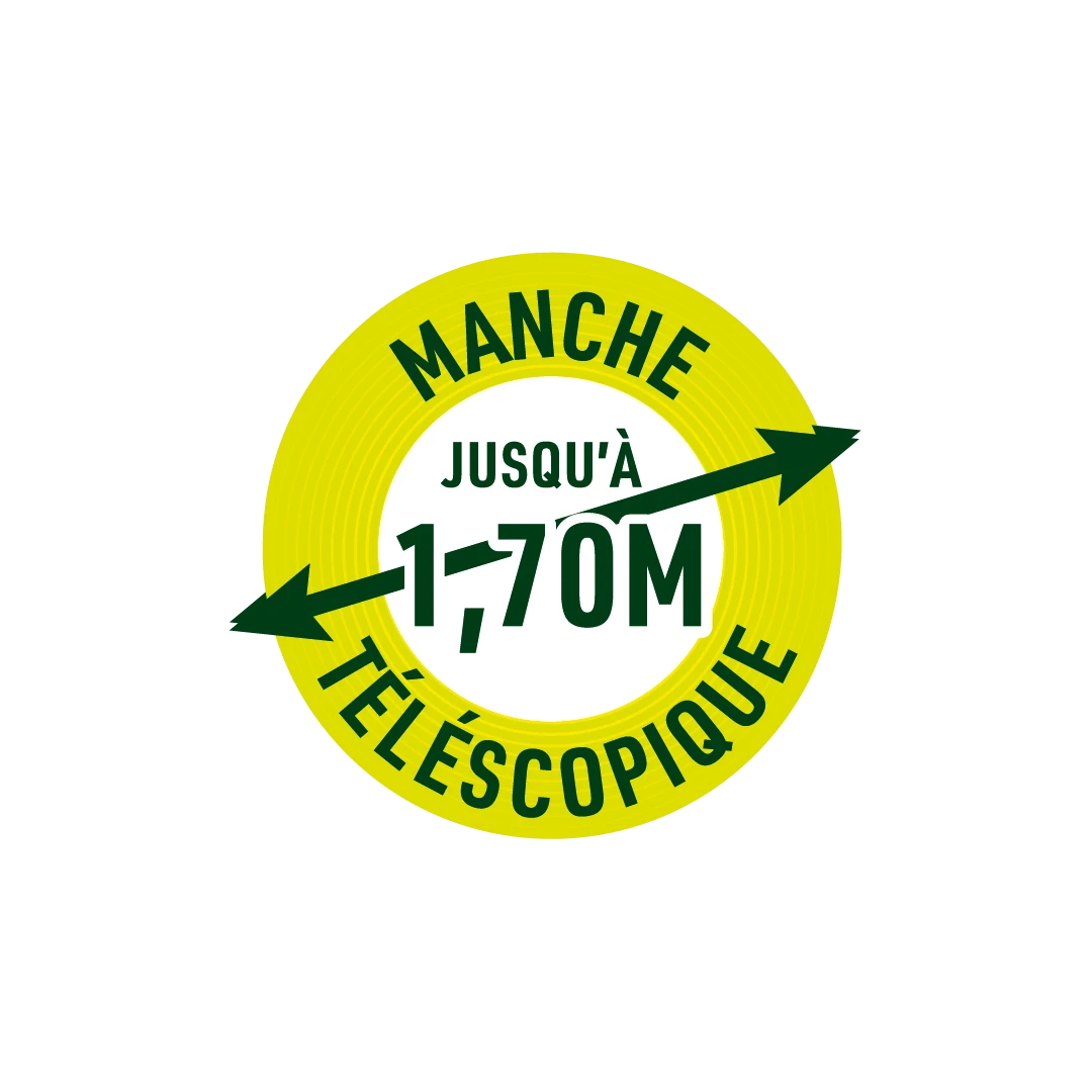coupe efficace : cette tronçonneuse sans fils 2 en 1 utilise une chaîne de guide pour assurer une découpe en douceur (tenseur de chaîne inclus), pour assurer un élagage de perfection en hauteur la tronçonneuse possède un bras télescopique allant jusqu’à 170cm et dispose d’un dispositif de sécurité.