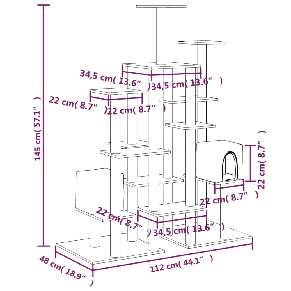 Gardez vos adorables chats amusés sans fin avec cet arbre à chat tout-en-un ! Tour pour chats tout-en-un : le mobilier pour chats à plusieurs niveaux est conçu avec 2 maisons et plates-formes, offrant un endroit parfait pour que vos chats puissent grimper, se percher, se gratter, se cacher et aussi se détendre.matériau moelleux et doux : la peluche très épaisse et douce est bien ventilée, résistante aux rayures, super confortable et chaude.poteaux en sisal naturel : les poteaux en sisal naturel, résistants et solides de l’arbre à chat, sont parfaits pour que vos chats adorés puissent satisfaire leur instinct de grattage et évitent qu’ils n’endommagent pas vos meubles. Remarque :chaque produit est livré avec un manuel de montage dans la boîte pour un montage facile.