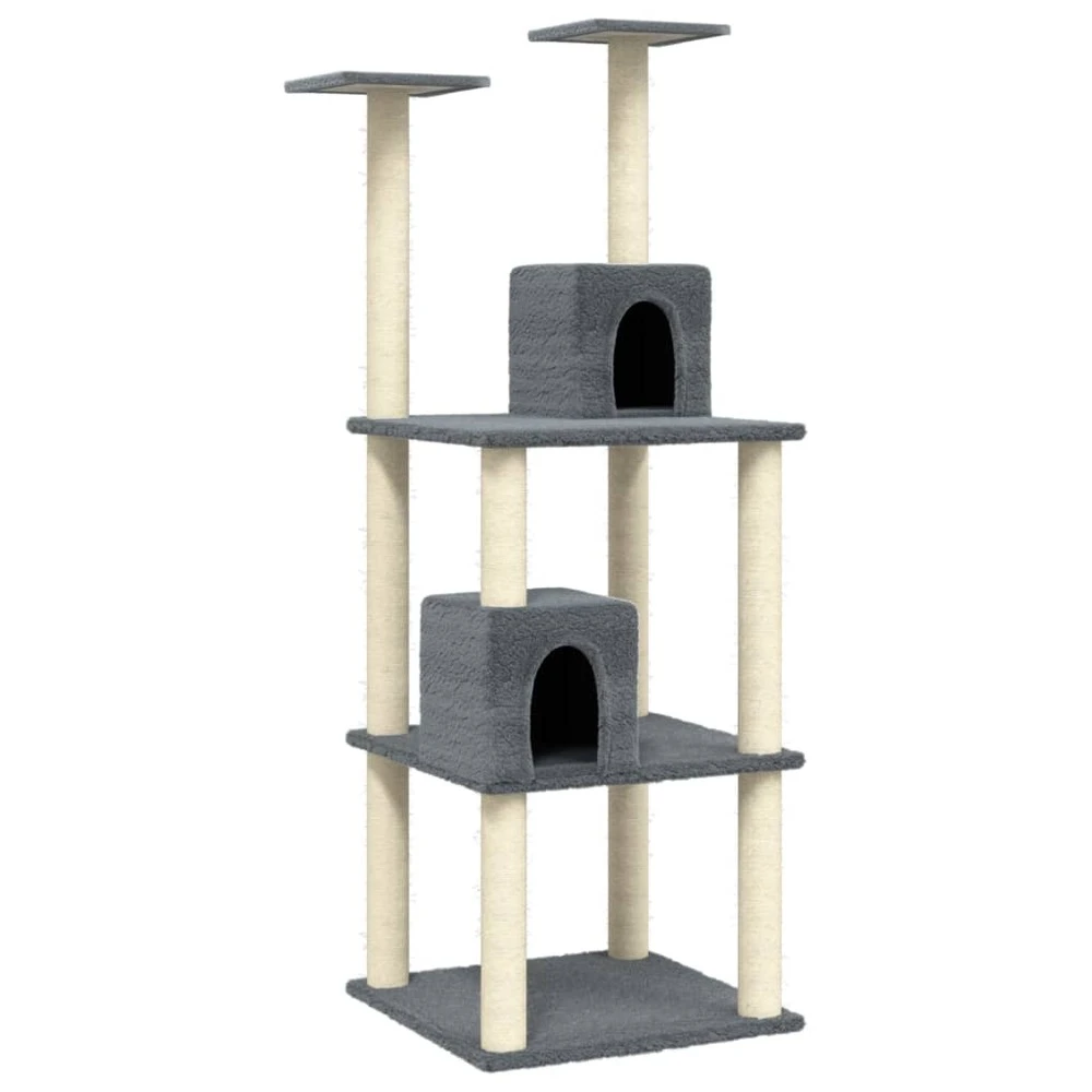 Cet arbre à chat est le refuge idéal pour que vos chats puissent se gratter, grimper, se percher, se cacher et se reposer. Il donne à vos chats la possibilité de s’étirer et de faire de l’exercice, surtout pendant les mois d’hiver, lorsqu’ils sont enfermés à l’intérieur. Poteaux en sisal : les poteaux en sisal naturel, résistants et solides, sont parfaits pour que vos chats adorés puissent satisfaire leur instinct de grattage et éviter qu’ils n’endommagent pas vos meubles.usage varié : ils se réjouiront se pourchasser tout en sautant dans ce centre de jeu amusant. Après suffisamment de jeu, vos petits amis à quatre pattes aimeront se reposer sur les plates-formes supérieures où ils auront une meilleure vue. Maison confortable : la maison permet à votre chat de se reposer et de dormir sans être dérangé.